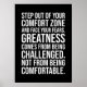 Beyond the gym, this poster speaks to those committed to the pursuit of entrepreneurship and leadership. The words serve as a daily reminder that stepping out of one's comfort zone is essential for achieving dreams and reaching new heights in business and life. Whether you're a budding entrepreneur or a seasoned success leader, the message in this poster aligns with the mindset of those who aim high and pursue their goals with unwavering resolve.