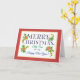 An elegant Christmas card for a Step Son, with Poinsettias, sprigs of Holly, Ivy and Fir Tree and deep blue lettering, outlined in gold-effect (ie not metallic paint), all within a deep red border. You can customise the inside message and this design is also available with a front cover to personalise.