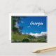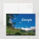 Magnificent Stepantsminda / Kazbegi Georgia Caucuses Mountains With The Famous Gergeti Trinity Church Area At 2170 m At the Back View / Landscape / Cityscape Postcard / Card to add to your travel memorabilia collection. A cool gift / present for all who love unique custom design personalised items, positive vibes, holidays, travelling, remote amazing destinations, love happy colours, busy prints etc. Explore, travel, country, destination, discover.
