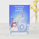 This whimsical winter illustration is perfect for celebrating your stepdaughter's sixth birthday designed to be fully winter with colors and details. A cheerful snowman stands proudly beside the snowy “6” he has just built, admiring his handiwork with a joyful expression. Snowballs are scattered around the base, adding playful movement, while soft winter flowers bring a gentle seasonal touch. The cozy palette and charming details create a magical winter atmosphere kids adore.