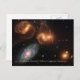 Three of the galaxies have distorted shapes, elongated spiral arms, and long, gaseous tidal tails containing myriad star clusters, proof of their close encounters. These interactions have sparked a frenzy of star birth in the central pair of galaxies. This drama is being played out against a rich backdrop of faraway galaxies.