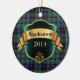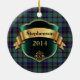 Colourful plaid ceramic ornament, with the traditional colourful clan Stephenson tartan plaid pattern, as a background. Graphics of a hunter green and gold tone shield like plaque, has custom black and gold tone text ready to personalise. Great looking family heirloom ornament. Makes a great gift ornament and decoration for other uses around the house.