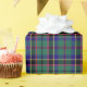 Gift wrap with the tartan for Clan Stevenson and Stephenson. Bright green, royal blue, and black Scottish plaid pattern from 1970, with yellow and red accents.