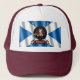The trucker hat above features the Stewart clan badge with tartan banner, Scottish flag background and crossed swords! Wear to highland games, Celtic festivals, family reunions or around town. Show everyone who you are! Proud to be Scottish!!