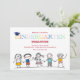 A juvenile invitation showing five happy kids holding hands. The graduation cap can be dragged to any location or removed. The word "kindergarten" can also be made larger or smaller ( + - ) or removed allowing the card to be made into a birthday party or other celebration for children. (Image by Freepik). The card is easy to customise with your wording, font and font colour. Not exactly what you're looking for? All our products can be custom designed to meet your needs at no extra charge. Simply contact us at heartfelthelper@gmail.com. Coordinating products available at your request at no additional charge.