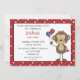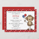 Start your party off right with our cute Birthday Invitation featuring cute monkey holding a red and blue balloon. Invitation features a bright red border with blue & white polka dots. Perfect for a girls birthday or boys birthday. Just personalise with your information and you're all set to go! Matching items including birthday postage stamps, favour stickers, thank you cards & thank you stickers are also available in our shop.