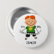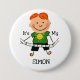 A cute stick figure birthday design button featuring a stick figure boy with red hair in a green shirt, black shorts, and text that reads It's My Birthday. Add your child's name easily to customise this cute stick figure birthday button.