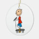 Stick Figure Boy on Scooter Ceramic Ornament