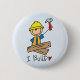 Stick figure carpenter/construction worker with hammer and boards with text 'I build'. Customise the background or add a name or text. Available on a variety of products from t-shirts, hoodies, mugs, mousepads, buttons, stickers and more.