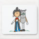 A stick figure cowgirl poses with her grey horse on cute stick figure cowgirl T-shirts, mousepads, mugs, aprons, stickers, cards, and more that you can customise with text or a name!