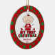Baby's First Christmas Ornament features a cute stick figure baby girl wearing a snowflake outfit set on a red & green polka dotted background! Personalise with your baby information and date and you're all set to go! Wonderful dated keepsake gift for your baby's 1st christmas.