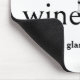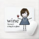 A cute stick figure girl with hair and wearing a blue denim dress, pearl necklace, and sneakers holding a glass of red wine with a definition of wine.