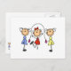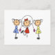 Three little stick figure girls having a blast jumping rope on stick figure T-shirts, mugs, tote bags, cards, stickers, and other items that are customisable and make great gifts for family members, children, friends, and coworkers!