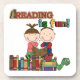 A stick figure boy and girl, books, a book worm, and text that reads "Reading is fun!" on reading theme T-shirts, mugs, cards, stickers, tote bags, keychains, buttons, magnets, ornaments, and other items great for anyone who loves reading and books!