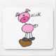 A stick figure pink pig design T-shirt, mug, mousepad, and more with text that reads "oink", great for anyone who loves stick figures and pigs!