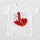 A stick figure girl with a red crayon draws red hearts and text reads "Be Mine" on adorable Valentine's Day t-shirts, mugs, tote bags, cards, stickers, postage, and other Valentine's Day stick figure items!