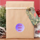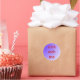 This fun sticker, with red contemporary lettering on a shaded blue background, has the pun: "stick with me"!