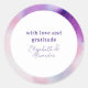 This sticker features a beautiful blend of purples, blues and pinks in a soft watercolor design. With clean, contemporary typography, it perfectly combines artistic elegance and a modern touch for your special day.