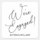 This elegant script font features the text We're Engaged! for a modern and sophisticated look to your engagement party decor.