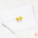 Two yellow cartoon stars are holding hands and smiling. They have small, round eyes and red shoes. There are several small pink hearts floating around them. The background is white.