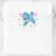 This round sticker is shown in white with a cute bluebird and pink flowers print.