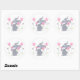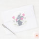 This round sticker is shown in white with a cute bunny and pink flowers print.