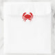 Round sticker shown in red/white colours with crab print. Customise this item or buy as is.