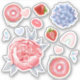 Custom cut vinyl sticker with strawberries, hearts, rainbows and delicate flowers.
