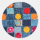 This sticker comes in a denim patchwork design that is embellished with colorful circles and tiny polka-dots.