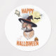 Halloween animals at full moon midnight walking the dark streets alongside scary monsters, flying vampire, black bats, walking zombie and living skeleton