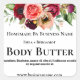This floral body butter sticker is a label for someone who loves making their own organic products to sell at fairs, fates and at their own shop stall at a market. It can also be used for handmade gifts for family and friends, simply change the existing details to your very own!