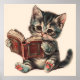 Cute cat reading book retro children illustration
