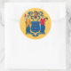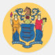 Crafted with precision, this sticker proudly showcases the flag of New Jersey, featuring a field of buff with a dark blue canton containing a light blue shield with three ploughs and a forward-facing horse's head above the shield. This emblematic design represents New Jersey's agricultural heritage and historical significance.