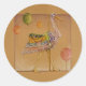 A coloured pencil illustration of a Carousel Stork that features a baby nestling on the Stork and floating balloons adding playfulness and movement. Perfect for a baby shower gift or birth announcement - personalise your purchase with a name or message!