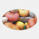 Fabulously rustic, this wonderful photograph offers an autumn harvest of pumpkins, melons and gourds on rough planked pallets at market. The small area of wood that can be seen has been computer modified to read "Give Thanks". Terrific as seals for holiday envelopes, on gifts, in scrapbooking . . . there's a huge number of ways the creative mind can use these delightful stickers. Also available in round, square, rectangular, triangular, star and heart shapes, you are welcome to choose the shape most suited to your needs or personality.