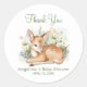 Stickers thank you for baby shower with adorable watercolor fawn nestled among flowers.