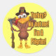 Thanksgiving T-shirts And Gifts sticker; Grab our funny Thanksgiving t-shirts and gifts displaying a turkey dressed up like a Thanksgiving Pilgrim trying to convince everyone he is not a turkey for the holiday feast.