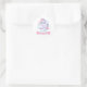 Stickers to a magical birthday party with an adorable unicorn with wings in the clouds on a rainbow background.