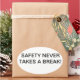 "THINK. SAFETY NEVER TAKES A BREAK! ® You will see this award-winning safety slogan on almost everything we print. These are the type of messages we need to see so desperately these days. Thanks for looking!