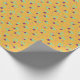 This wrapping paper features an abstract design resembles the sticky hands we all played with as kids. The sticky hand designs could easily be flowers too, depending on your point of view! Either way, these fun designs are purple and aqua and are set on an orange background with dots and sets of stripes.