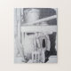 The original monochrome pencil drawing on this jigsaw puzzle has been reproduced from a still life created many years ago. The drawing came about when was moving house and sitting in the garden perusing around the plants I'd planted and during the years I'd lived in the house. When I saw the untidy gardening tools, watering can and plant pots under my workbench I couldn't resist creating an original drawing to remind me of one of those little corners that are often taken for granted, it may be untidy but you know where everything is, it's an organised mess. This original jigsaw will fill many hours and has a degree of difficulty because it is black and white. I titled The original drawing "A Little Corner In The Garden."