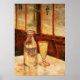 Still Life with Absinthe by Vincent van Gogh is a vintage fine art post impressionism still life painting featuring a carafe and a glass of absinthe sitting on a table near a window in a cafe or bar and restaurant. The bottle looks like it could have water or even wine.