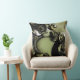 The throw pillow featured the image "Still Life With Confused Movement" by Carmen Fine Art in shades of green, grey, and black in a floral still-life decorative style.