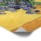 A fine art poster with the post-impressionist painting, Still Life with Iris (1890) by the Dutch artist Vincent van Gogh 1853-1890). A clay pot with an arrangement of blue-violet irises against a golden background.