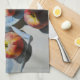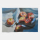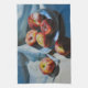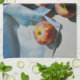 A clean, minimalist still life painted in precise realism. Peaches rest on a subtly patterned plate and crisp white cloth, illuminated by directional natural light. A modern yet timeless artwork that suits Scandinavian, minimalist, and contemporary interiors.
