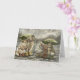 This greeting card features dogs and bunnies sharing umbrellas on a rainy farm day. The sweet countryside scene is perfect for birthday wishes, thank you notes, or thinking of you messages. A lovely card for animal lovers and anyone who enjoys gentle farm scenes.