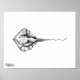 Stringrays are cool looking ocean animals than look like they are flying as they swim. This stingray is beautifully rendered in black and white.