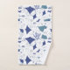 Cool blue and white towel with a pattern of stingrays sweeping and swimming underwater in a coral reef.