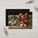 This artist trading card features fine art photography of the ingredients for a delicious stir fry of vegetables and seafood. Green snow peas, brown Crimini mushrooms, sliced red peppers, chopped scallions, garlic cloves and raw shrimp are piled on a cutting board, ready for the wok!