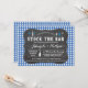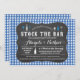 Chalk stock the bar party invite with blue check & a selection of bottles & glasses. Perfect for an engagement, couples shower or a stock the bar party, change the text to suit your party.